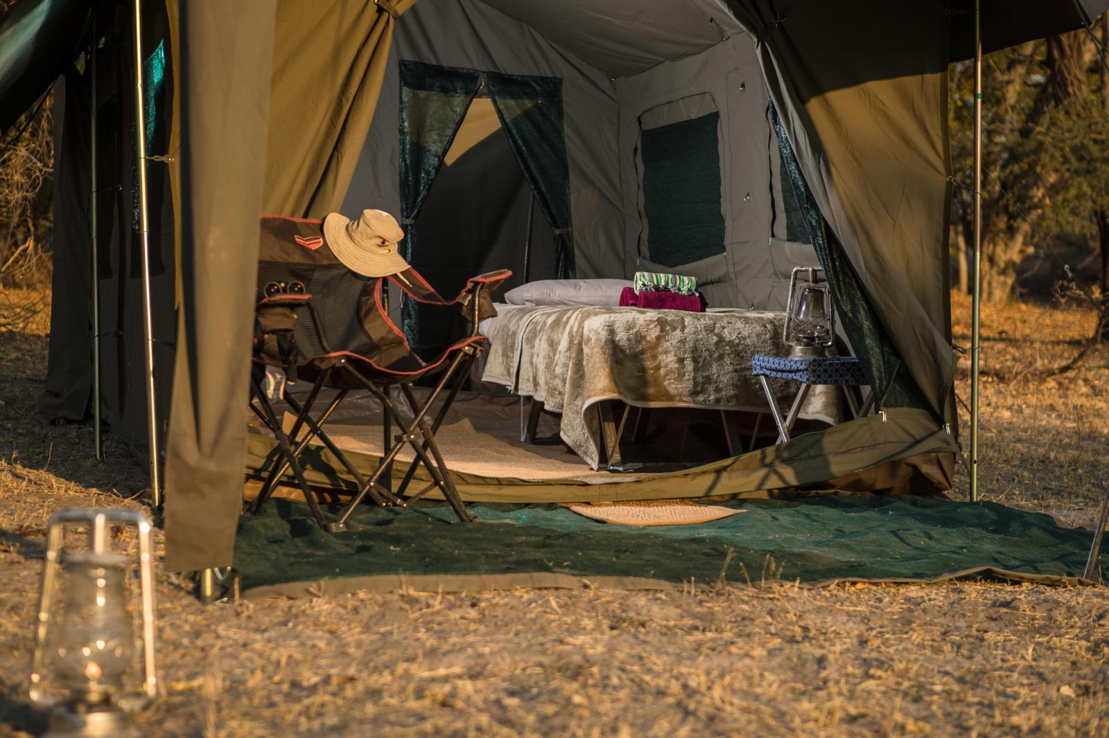 A common misconception is that a camping safari in Botswana means getting stuck in and helping with the setting up camp and cooking your own meals, well, nothing could be further from the truth. The hardest work you are going to have is sipping on your gin and tonic whilst watching the African sun slip below the horizon. And let’s be honest, it’s not really camping is it? Large tents with beds, bedside tables, LED lights, en-suite toilet and shower, covered verandah area with relaxing chairs and washbasins. That’s why we call it a mobile tented safari and NOT a camping safari, our professional safari staff take care of all the camp chores and our wonderful safari chefs a...