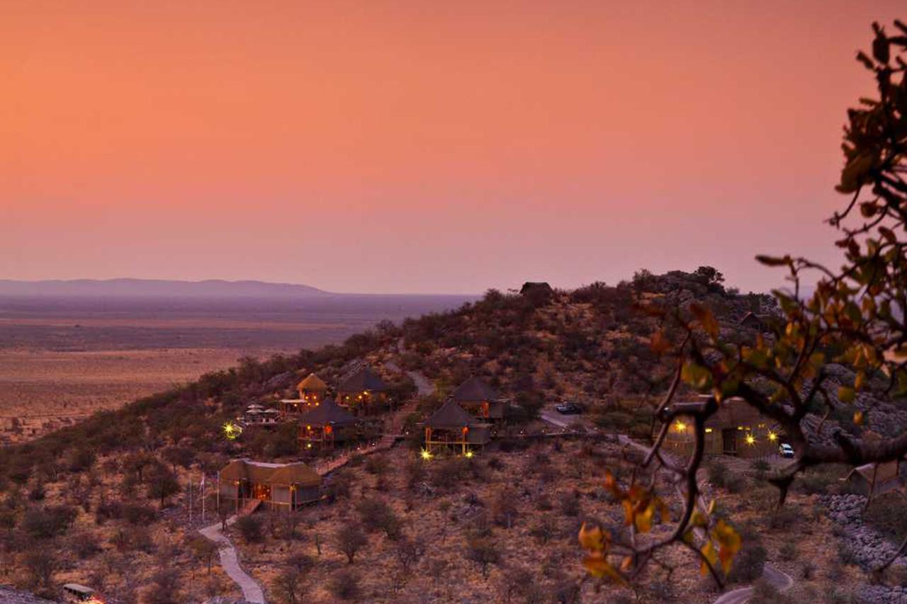 Okaukuejo, located 17 km from the southern entrance of the Etosha National Park, is famous for its flood-lit waterhole, where visitors can observe at close quarters a spectacle of wildlife congregating and interacting.