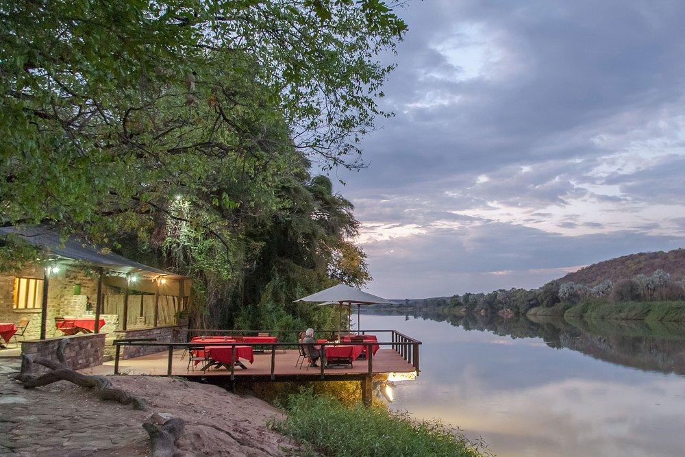 The lodge is situated on the bank of the Kunene River which forms the north-western border between Angola and Namibia. A lush canopy of indigenous trees provides shade for chalets and campsites, while the swimming pool has its spot on the sunny lawn.